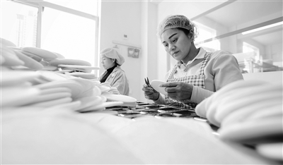 10月10日,位于抚州市东乡区的江西美尔丝瓜络有限公司,女工在车间加紧缝制家居布鞋。当地通过“公司+合作社+基地+农户”发展模式,带动“太空丝瓜”种植和居民就近就业,绿色原生态的护肤、洁具、布鞋等类别产品,俏销国内外市场。本报记者 徐 铮摄