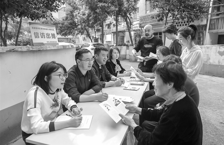 10月15日,在上饶市信州区西市街道天津桥社区,上饶市委信访局联合信州区委信访局,开展“面对面”街头接访,广泛收集群众诉求。今年以来,上饶市委信访局通过派出工作人员走村(社区)入户、定期到小区设点,上门为群众解难事,切实将矛盾问题化解在基层。本报记者 吕玉玺摄