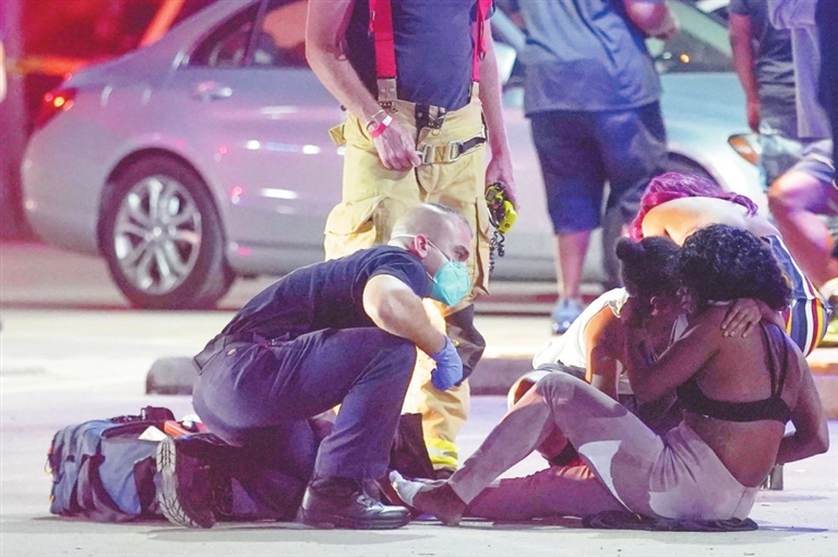 10月20日,人们在美国休斯敦发生枪击事件的夜总会外照顾一名女子。