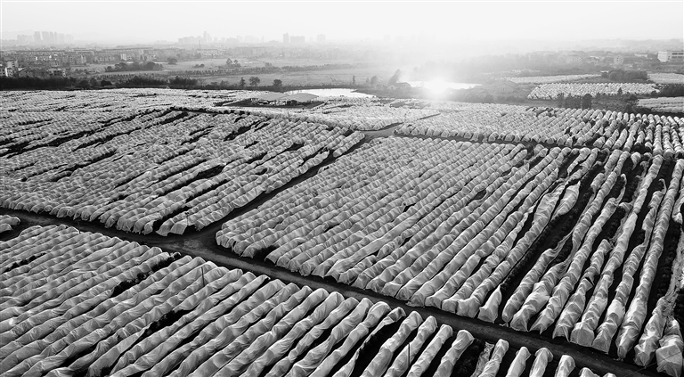 1月9日,永丰县新天地家庭农场的千亩果树穿上“冬衣”防冻保暖。近日,该县气温持续走低,当地果农通过套袋、覆膜等为果树穿“冬衣”抗寒防冻,保护果树安全越冬。特约通讯员 刘浩军摄