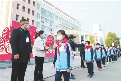 1月11日,南城县纪委监委工作人员在县第二小学开展疫情防控监督检查。通讯员 周 娜摄