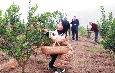 近年来,萍乡市安源区,采用“公司+合作社+贫困户就业”模式,积极打造现代农业园,发展采摘游、徒步游。图为游客在青山镇大城农业东方红柑橘基地采摘柑橘。