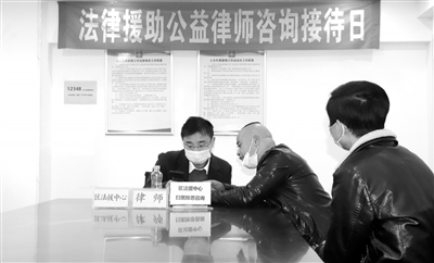 1月11日,律师为南昌市青云谱区阳光南社区辖区工地农民工提供法律咨询援助。目前,该区人社、司法等部门与律师事务所联合开展岁末“送温暖,保平安”活动。
