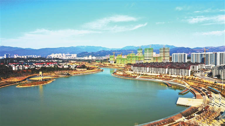 1月8日,晴空下的南昌市新建区欣悦湖公园美如画卷。近年来,新建区落实“河湖长制”,维护河湖生态安全,致力河畅、水清、岸绿、景美,打造绿水青山、生态宜居的美好家园。