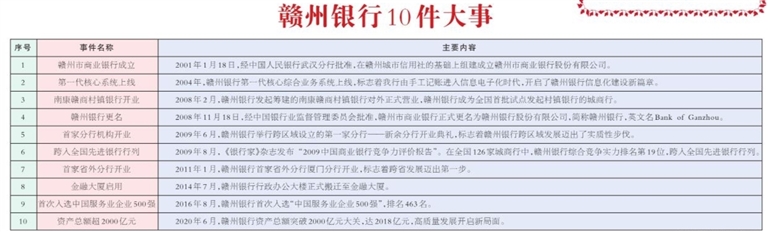 这20年,赣州银行党建引领、稳中求进。总行党委充分发挥领导核心和政治核心作用,推动公司治理向现代化企业迈进,企业文化深入人心,员工的获得感、幸福感、归属感不断增强。