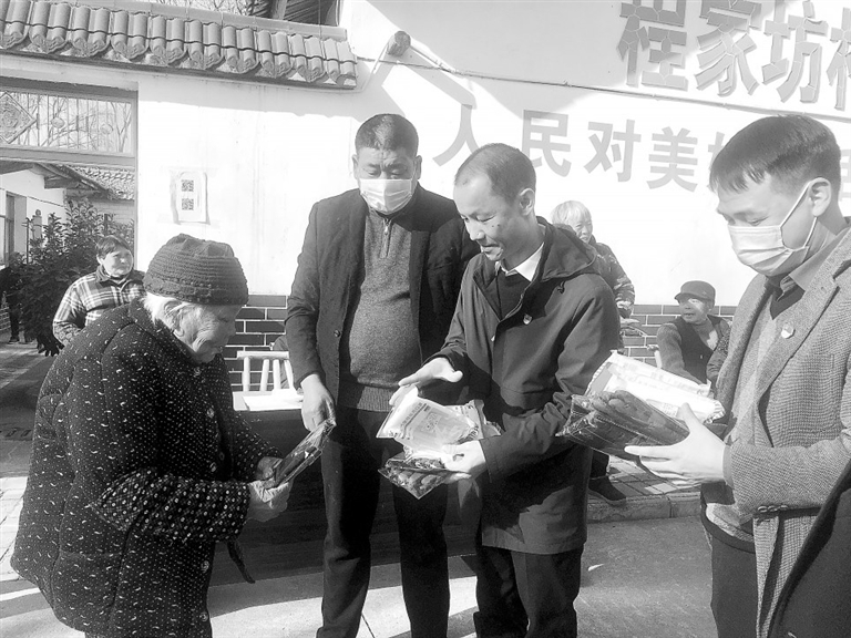 1月19日,在分宜县洞村乡程家坊村颐养之家,新余市直机关工委工作人员为老人送上手套、口罩等防寒防疫物资。近年来,该市持续开展“暖冬行动”,精心组织捐赠活动,让农村贫困户和颐养之家老人温暖过冬。邹宇波摄