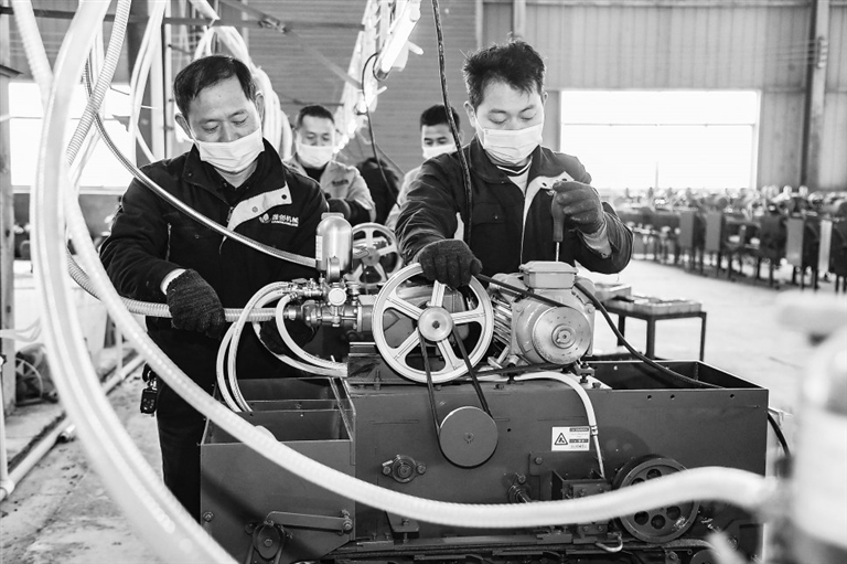 1月16日,广昌县莲创机械制造有限公司车间工人加班加点生产和装配莲子剥壳去皮一体机。2021年,该企业已接到200多台产品订单。特约通讯员 曾恒贵摄