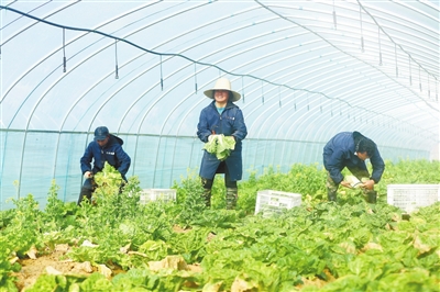 1月18日,共青城市金湖乡黄桥村村民在基地大棚内收割有机蔬菜。据了解,黄桥村乡贤回乡创建二十九度现代农业产业基地,依托“农户+合作社+公司”模式,带动周边群众30余人就业,促进农民增收。通讯员 况 建摄