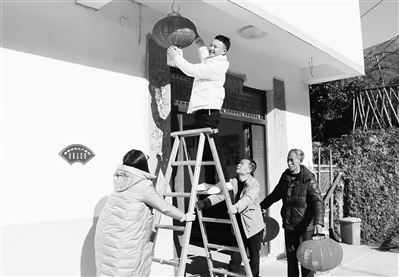 1月18日,奉新县澡溪乡黄石村徐屋组,驻村干部和村干部在为贫困户家挂灯笼。连日来,驻村干部带着灯笼、春联、慰问品等来到建档立卡贫困户、贫困老党员等家中,为他们贴春联、贴窗花、挂灯笼,送去新春的祝福,确保困难群众都能过上一个祥和、温馨的新春佳节。通讯员 魏晖摄
