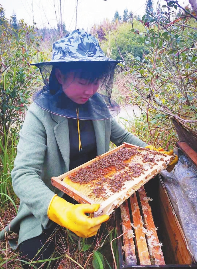 由于刚入行,朱丽兰曾遇到过蜜蜂冻死或饿死的情况,但她毫不气馁,一方面请教当地养殖专业户,一方面钻研书本知识,并经常参加县里组织的养蜂技术培训,迅速成长为养蜂“达人”。为了赶上花期,朱丽兰拖着187箱蜜蜂县内外到处转场,有时在深山老林里一待就是数月。不过,这些苦让她的日子“甜”了起来。依靠养蜂,她每年收入近5万元,2018年,一家人顺利脱贫。“好日子是干出来的。年轻时候不努力,还等什么时候努力?!”谈起生活的改变,朱丽兰感慨地说。现在,她开通了抖音号“土蜂蜜兰儿”,不间断发布一些养蜂小视频,已积累1826个粉丝,最高点击量达到6万人次。