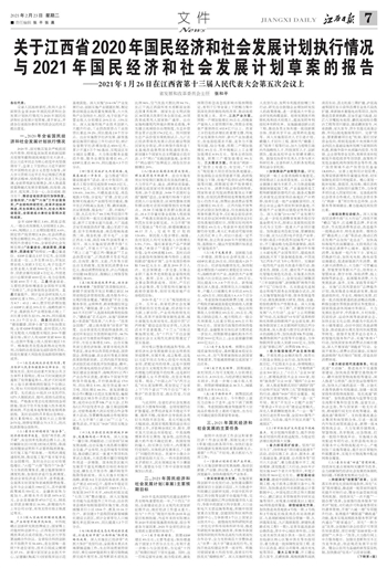 关于江西省2020年国民经济和社会发展计划执行情况与2021年国民经济和社会发展计划草案的报告