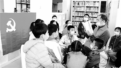 2月24日,南昌市青云谱区福祥社区党员志愿者正在给孩子们普及党史知识。新学期伊始,该区开展党史教育,将“学党史 颂党恩 跟党走”作为全区中小学开学第一课主题。 本报记者 海 波摄