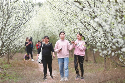 2月24日,萍乡市湘东区东桥镇长塘村梨花绽放,散发出浓浓的春意,吸引众多游客前来赏花踏春。通讯员 彭 亮摄