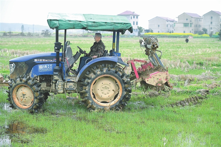 现在,除了稻谷的烘干需要借助烘干厂外,从种植到收割全过程,老丁的旋耕机、插秧机、收割机等农机轮番登场,只需请几个农机手和帮工,不仅省下了租机成本等一大笔“真金白银”,而且种田更加从容、更有效率、更为轻松。