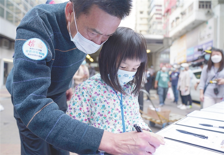 在香港中央图书馆前,签完名的市民廖宇轩说:“一定要站出来用行动支持完善香港选举制度。完善香港选举制度,有利于维护香港长远繁荣稳定,我觉得这对香港人非常好,香港人渐渐会理解中央的苦心。”