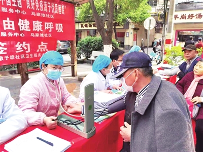 近日,省胸科医院(省第三人民医院)联合南昌市墩子塘社区卫生服务中心在叠山路马家池社区开展多学科义诊,为社区居民宣传普及健康知识。孙玉婷摄