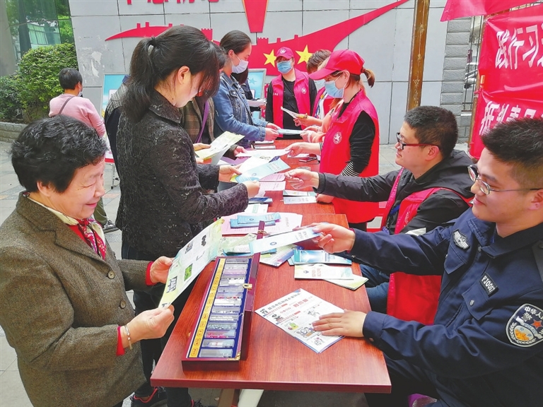 3月29日,南昌市东湖区墩子塘街道下水巷社区新时代文明实践站联合区统计局等单位,开展“共建共治共享,共绘平安江西新画卷”主题宣传活动。通讯员 彭雪玲摄