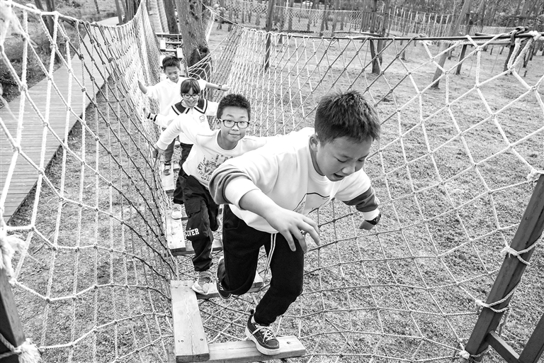 3月27日,广昌县长桥乡上凡村香花湾景区,孩子们正在体验“穿越丛林”项目。近年来,该景区打造集观光、休闲、度假、运动、康养为一体的生态乡村旅游点,拓宽群众增收渠道。