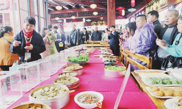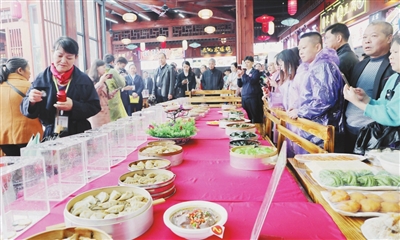 4月10日,“迈步全面小康 品味幸福生活”信丰县2021年美食文化节在县城塘头湾美食街举行,吸引了众多市民前来品赏。图为大众评委进行现场投票。 通讯员 李 健摄