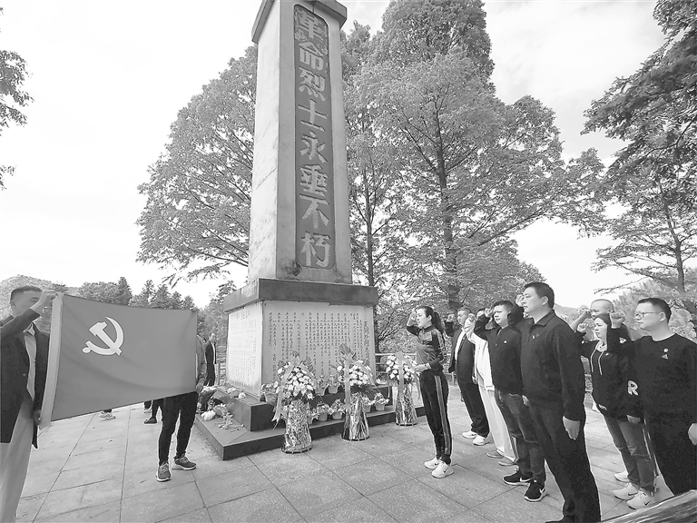 4月21日,鹰潭市大数据中心组织党员干部来到革命烈士夏润珍的故乡——贵溪市文坊镇岭西村,开展以“重温革命历史,传承战斗精神”为主题的红色教育活动。本报记者 钟海华摄