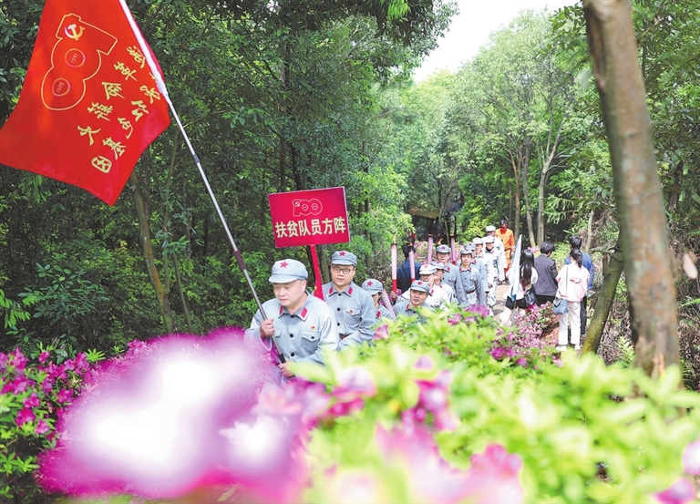 | 4月17日,万年县裴梅镇组织老党员、退役军人、抗疫卫士、扶贫队员、少先队员以及社会群众6支队伍,重走当年方志敏战斗过的路线,传承红色基因,宣传红色文化。(特约通讯员 徐声高 摄) |
