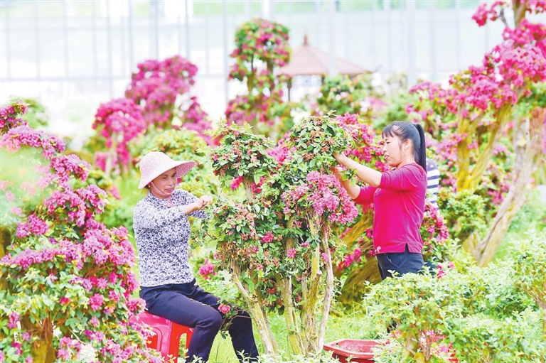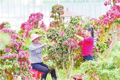 | 4月19日,会昌县小密乡杉背村杜鹃园,工人正在给杜鹃疏花修枝。杜鹃园有春鹃、夏鹃、高山杜鹃、井冈杜鹃等200多个品种、10万余株。该县通过发展杜鹃花卉苗木、杜鹃根桩雕刻、杜鹃主题乡村旅游等产业,助力乡村振兴。(特约通讯员 朱海鹏 摄) |