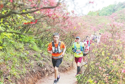 | 4月24日,来自全国各地的600余名长跑爱好者,奔跑在萍乡市湘东区杜鹃花海间。近年来,江西生态环境质量稳居全国前列。(特约通讯员 李桂东 摄) |
