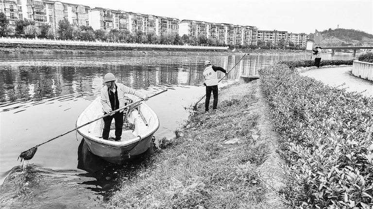 | ▲ 萍乡市大力开展“清河行动”,河水环境明显好转,水质显著提升,区域水环境质量达标率达100%,呈现出“水清、河畅、岸绿、景美”的景象。图为湘东区“河小青”在清除垃圾。何 凯摄 |
