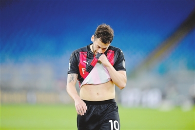 4月26日,AC米兰队球员恰尔汗奥卢在比赛中。当日,在2020-2021赛季意甲联赛第33轮比赛中,拉齐奥队主场以3∶0战胜AC米兰队。新华社发 (奥古斯托·卡萨索利摄)