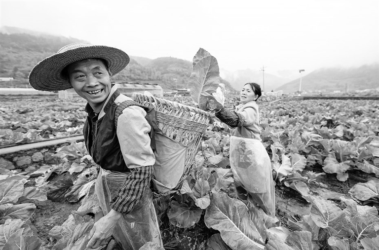 5月5日,农民在贵州省遵义市正安县新州镇向家坝坝区蔬菜基地采收花椰菜。 新华社发(赵永章摄)