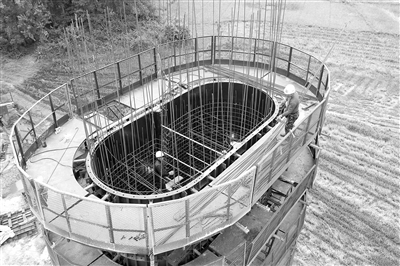 5月3日, 义城昌江特大桥跨济广高速段施工现场一片忙碌。义城昌江特大桥属于昌景黄铁路部分,其中,跨济广高速段全长为3437米,该段工程预计2022年6月完成施工建设。吴福清 摄