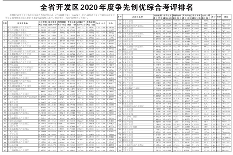 全省开发区2020年度争先创优综合考评排名