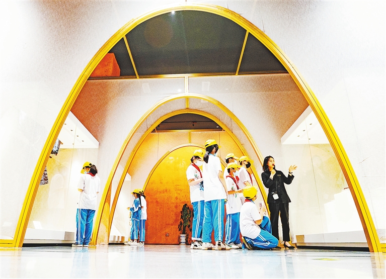 5月14日,分宜县麻博物馆内,分宜四小的学生们在老师带领下穿越古今,感受麻主题文化。