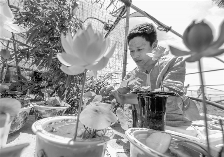 5月25日,在微莲苑种植专业合作社内,工作人员在修整微莲。近日,河北省邯郸市临漳县柏鹤乡袁油坊村微莲苑种植专业合作社内20余万盆观赏型微型莲花相继绽放。近年来,临漳县柏鹤乡因地制宜,以“合作社+生态+创意”的理念发展观赏盆栽微型莲花种植,带动周边群众共同致富。 新华社记者 王 晓摄