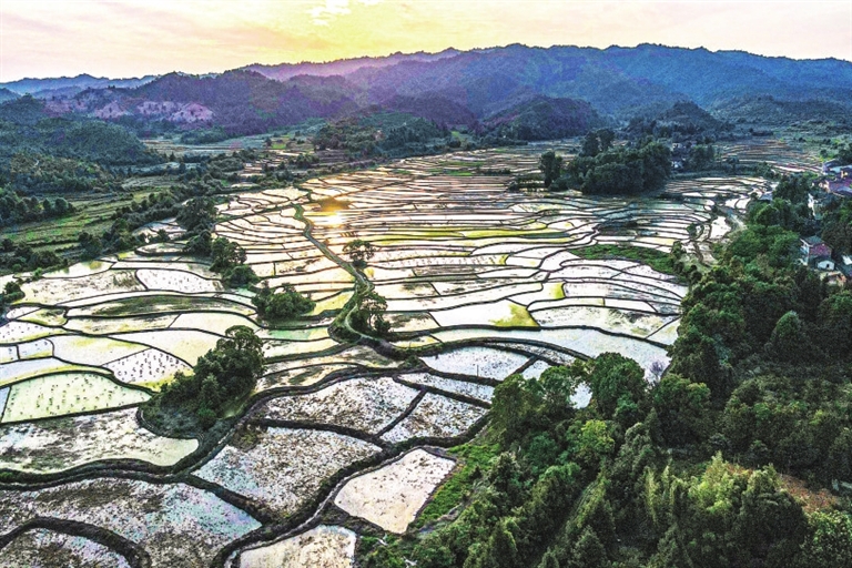 无人机航拍的广昌县头陂镇山下村田园风光,美丽如画。近年来,该县积极推进生态保护与乡村振兴,着力构建产业兴、生态美的新农村,实现农业增效、农民增收、乡村兴旺。 曾恒贵摄