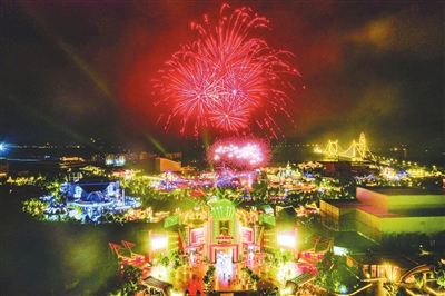5月28日,国内首座红色文化高科技主题公园——赣州方特东方欲晓正式开园。该园区位于赣州市章贡区,总投资30多亿元,占地40万平方米,运用“文化+科技”的手段打造了37个主题项目,为游客带来前所未有的“红色旅游新体验”。开园当晚,园区上演了华丽的“烟花秀”,漫天的流光溢彩惊艳全城。 张德坤摄