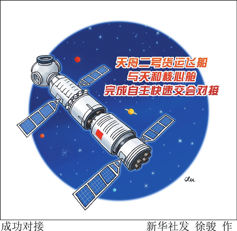 5月29日,天舟二号货运飞船顺利从海南文昌航天发射场升空,并于30日凌晨与天和核心舱精准完成自动交会对接。