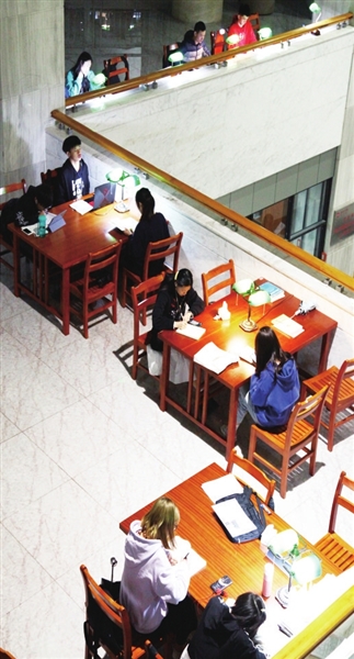 近日,多名学生在新余学院图书馆明亮、舒适、温馨的小台灯下静静地阅读。新余学院将党史学习教育与解决实际问题结合起来,坚持“以生为本”的服务育人理念,积极开展“我为师生办实事”实践活动,为广大学生学习生活创造良好条件,进一步提高师生的获得感、幸福感、满足感。彭 力摄