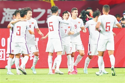 当日,在江苏苏州举行的2022年卡塔尔世界杯预选赛亚洲区40强赛中,中国队以7∶0战胜关岛队。