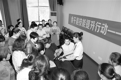 6月2日,余干县劳动就业局为就业困难群体举办就业技能专题培训。近年来,该局先后举办了育婴员、电工等专业技能培训,惠及群众2000余人。