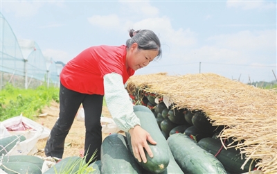 6月7日,会昌县筠门岭镇元兴村大棚蔬菜基地,数十名工人忙着采摘装运黑皮冬瓜供应市场。今年,筠门岭镇通过发展设施农业,引进种植100余亩黑皮冬瓜,带动村民就业增收。