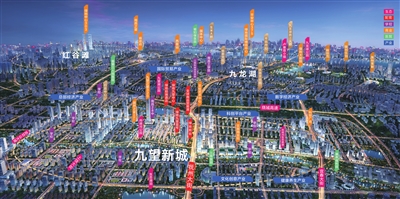 为此,九望新城结合城市空间布局,坚持绿色发展理念,对照未来科创智慧活力新城,突出“科创智慧+”,规划布局“总部经济、科创平台、国际贸易、数字经济、文化创意、健康养生”六大产业支撑体系,引进活力四射的产城项目,树立以产兴城、产城联动的典范,打造人们创业就业的福地。