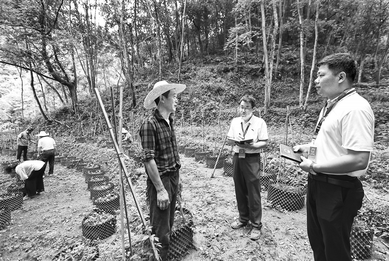6月16日,德兴市花桥镇祖氏百草园中药材种植基地,市镇两级人大代表在向种植户了解情况。当地成立大健康产业代表联络工作站,通过实地查看、现场询问、座谈讨论等方式,给大健康产业发展“把脉问诊”。 本报记者 徐 铮摄