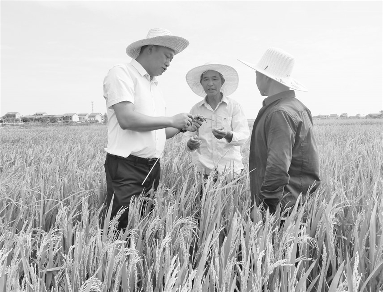 6月17日,南昌县八一乡农业农村办技术人员来到华庆家庭农场,指导农民进行田间管理。目前正值早稻孕穗、抽穗关键期,该乡组织农技人员深入田间进行技术指导,确保早稻稳产增产。 通讯员 罗春华摄