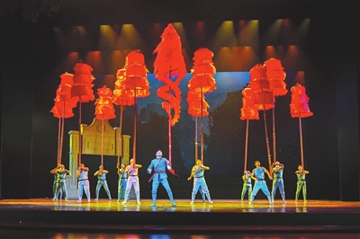 在这部剧中,董争臻还启用了一些几乎要消失的传统杂技样式,既倾注了现代意识,又重视综合表现。如在本体技术的运用上,充分集合杂技的地面技巧、高空腾跃、魔术悬宕,以及滑稽表演手段的合理巧用等来构建故事、塑造英雄、写意传奇,营造出很多精彩的观演桥段。