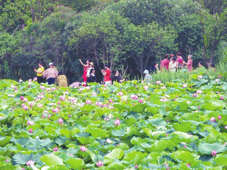7月3日,雨过天晴,市民在南昌象湖湿地公园赏荷。本报记者 涂序理摄