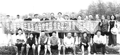 萍乡市安源志愿者协会党支部组织全体党员来到湘东区广寒寨乡三十六湾生态种植基地参加劳动,把学习课堂搬到了田间地头。李 利摄