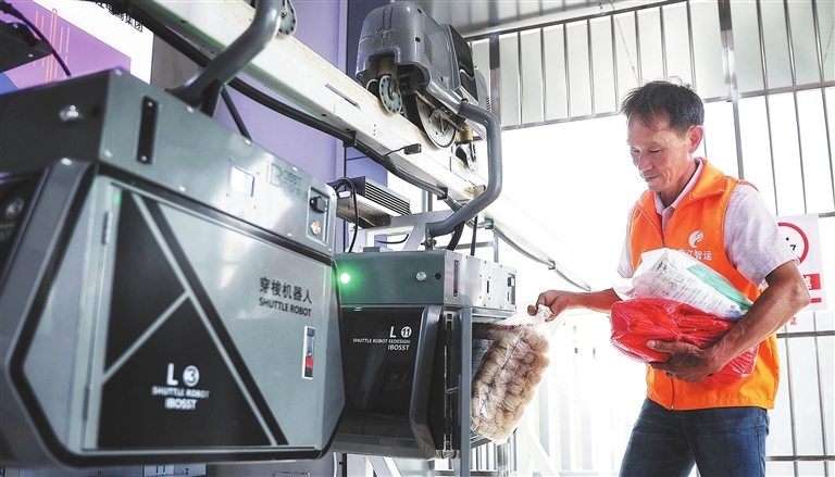穿梭机器人不仅可以把外地的优质产品带到村里,同时能把村里的脐橙、紫薯、茶油、蜂蜜等农副产品,更快销往全国各地,解决了乡村物流“最后一公里”问题,拓宽了赣南的乡村振兴之路。