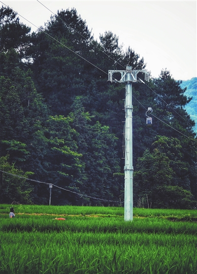 行走在安远县鹤子镇的乡间小路上,抬头常常可见“小缆车”般的箱体,在“电线”上来回快速穿梭。6月8日记者跟着“小缆车”来到了阳佳村,村民郭建明正在基站索道旁等候。打开到站的“小缆车”,里面装的原来是寄到村里的快件。“以前在网上买个东西,快件只能到集镇,还要骑十几分钟的电动车去拿。现在快递可以直接通过这个‘小缆车’到村里,别提多方便了!”