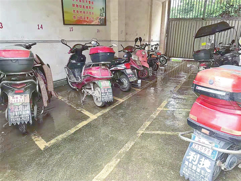 图❹消防通道被电动车封堵。本报记者 余红举摄
